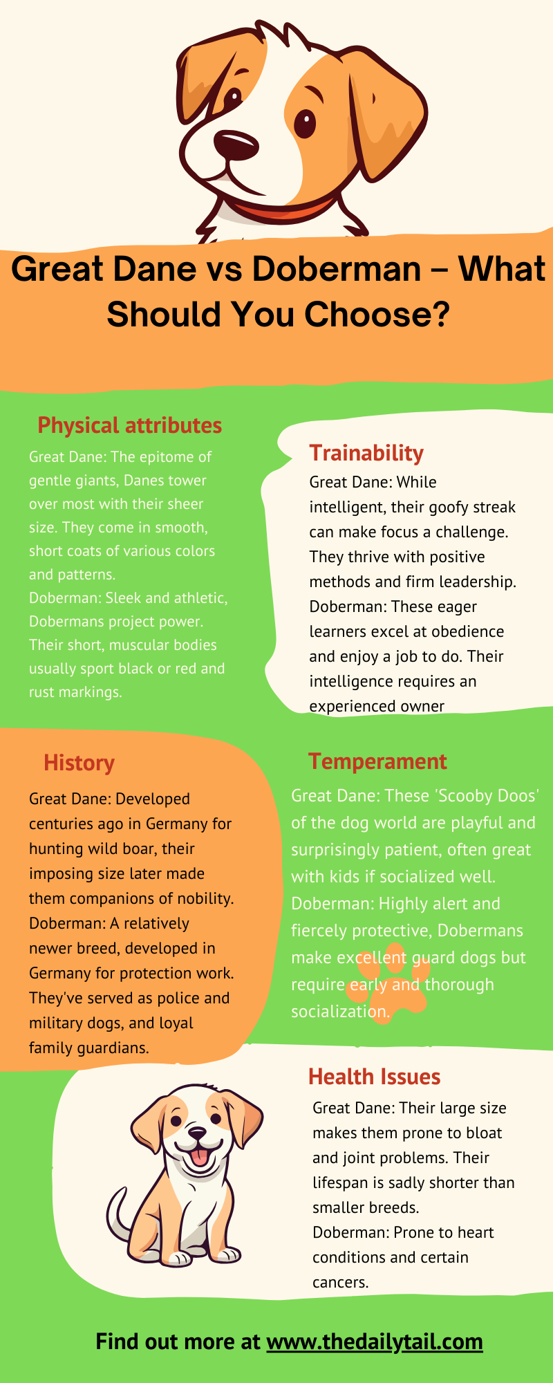 If you got here, you are probably a fan of both dogs. So, it is a bit hard to choose between Great Dane and Doberman.